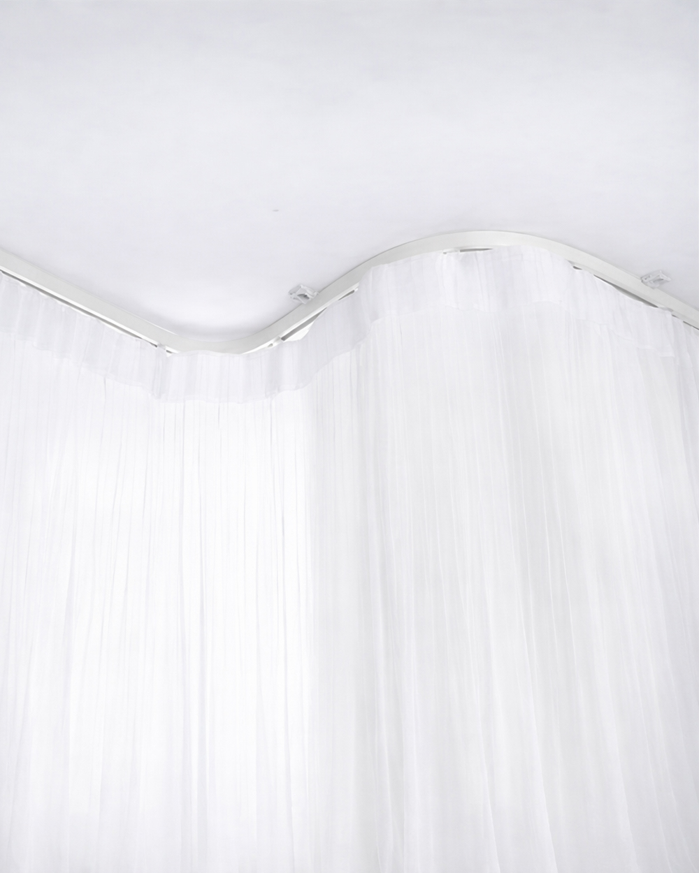 Șina Metalică SIRACUSA fără șnur, cu curbare continuă, este soluția ideală pentru perdele ușoare și medii, în special în cazul ferestrelor pe colț sau al configurațiilor în S. Datorită curburii continue, perdeaua se deplasează lin și uniform pe întreaga lungime a șinei, inclusiv în zona colțului, fără blocaje sau întreruperi.