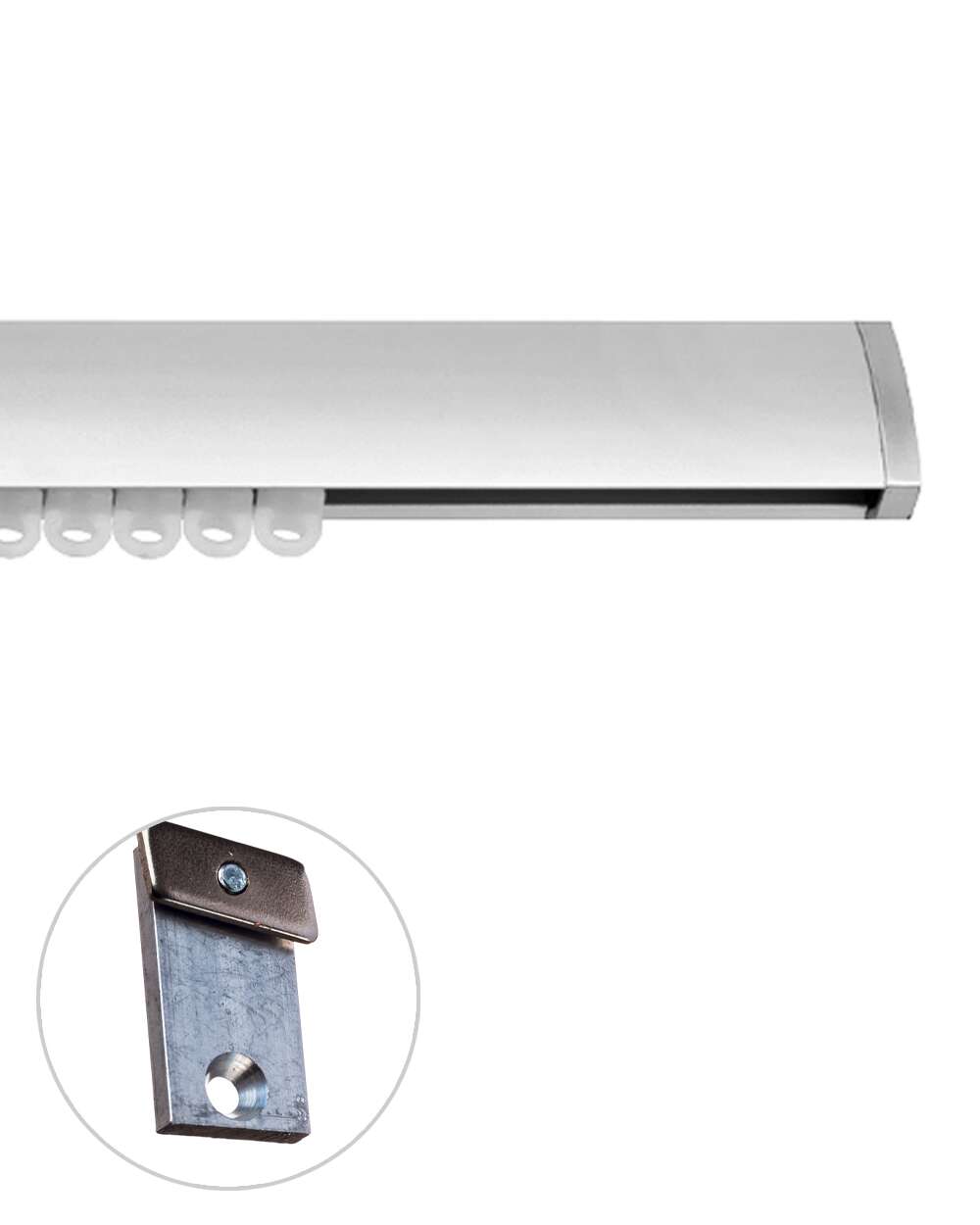 Realizată din aluminiu, prinderea oferă rezistență și durabilitate în timp, menținând stabilitatea șinei chiar și în cazul utilizării frecvente. Designul său compact permite o fixare aproape invizibilă, contribuind la un aspect ordonat al plafonului.