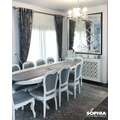 Draperia Antique Roma, in  nuante de gri, este perfectă pentru a înfrumuseța orice încăpere. Cu un model inedit în stil clasic, aduce splendoarea imperiala intr-o tesatura care va schimba fundamental decorul casei tale, prin eleganta si rafinament. Tesătura face parte din colecțiile de lux.
