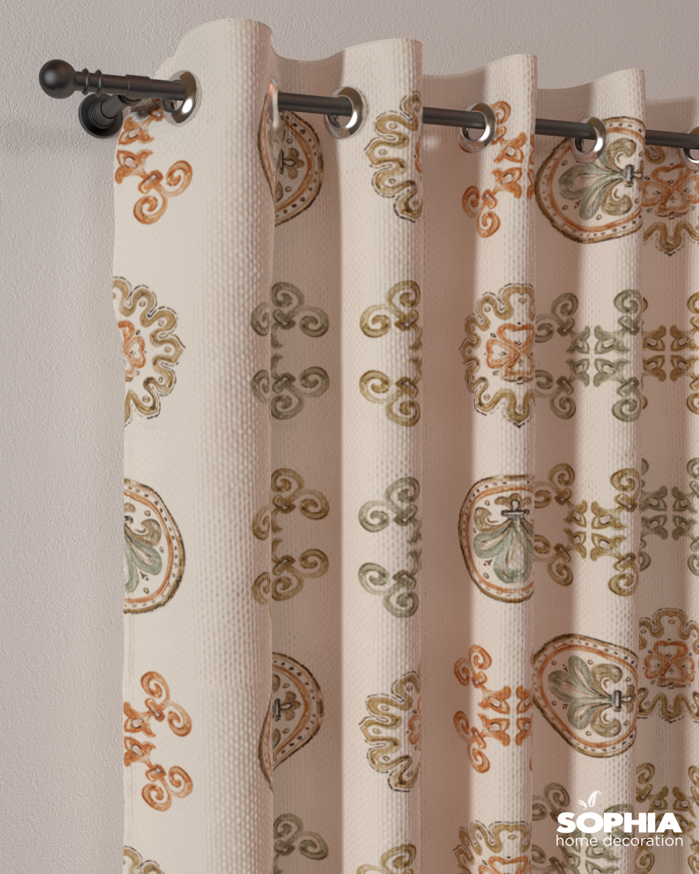 Așadar, dacă ești în căutare de idei și dorești să folosești draperiile pentru a reîmprospăta designul locuinței, alege draperiile Barcelona, de culoare maro/portocaliu/gri, in stil shabby chic.