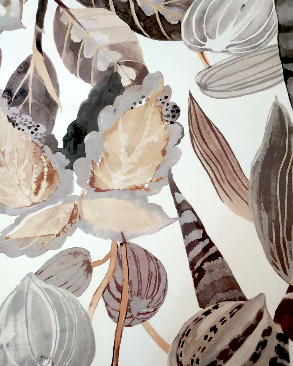 Tesatura draperie Belize Velvet, frunze, gri, bej, maro