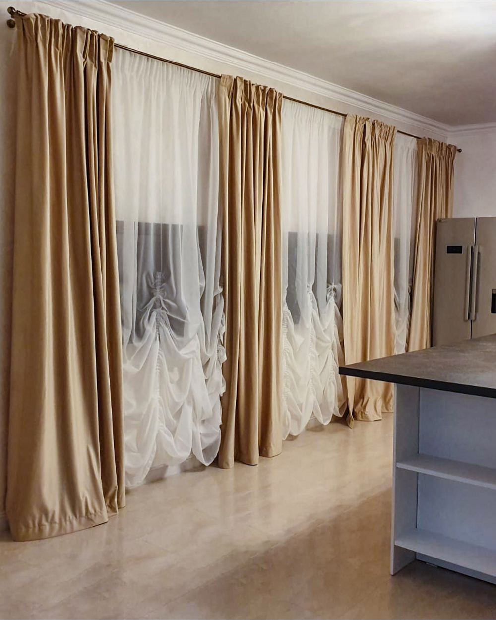 In functie de dorintele si cerintele clientului, draperia poate fi imbogatita cu pasmanterie, oferind caminului tau un plus de frumusete.