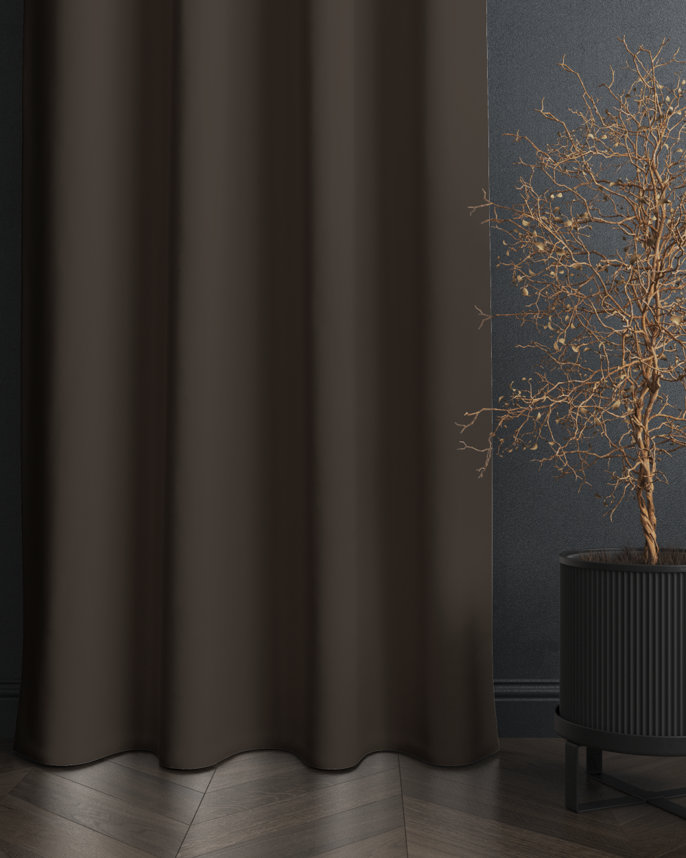 Tesatura draperie Bruxelles, de culoare brun, este perfecta pentru a infrumuseta orice incapere. O atmosfera calda, un ceai impreuna cu prietenii, o seara agreabila cu familia? Le poti trai din plin intr-un interior rafinat, decorat cu o draperie confectionata Bruxelles, iar la solicitarea clientului aceasta poate fi îmbogățită cu pasmanterie, oferind decorului un plus de frumusețe.