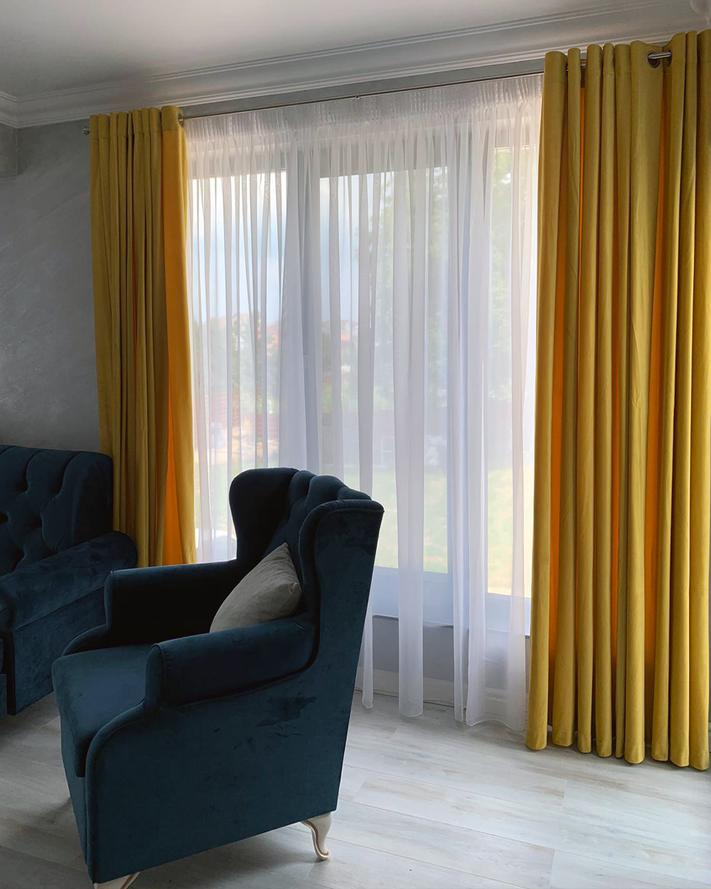 Tesatura draperie Bruxelles, de culoare galbena, este perfecta pentru a infrumuseta orice incapere. Un pranz de duminica alaturi de prieteni este mai agreabil atunci cand nuanta suava a draperiei galbene din iti zambesc de la fereastra. Alege o draperie vesela pentru o stare de spirit mai buna. Materialul fin de catifea aduce un plus de rafinament si eleganta caminului tau si ofera decorului o nota aparte.