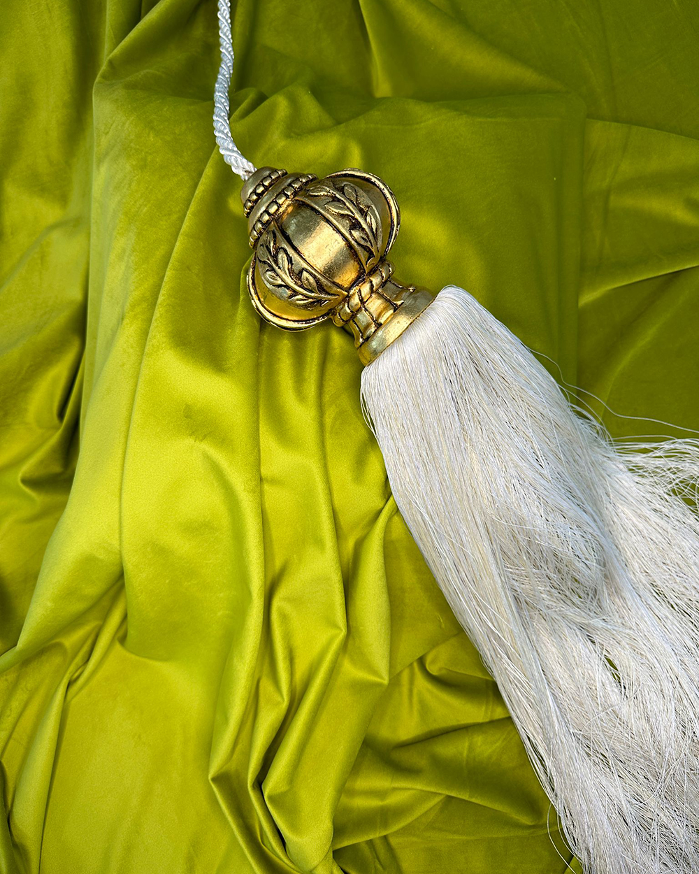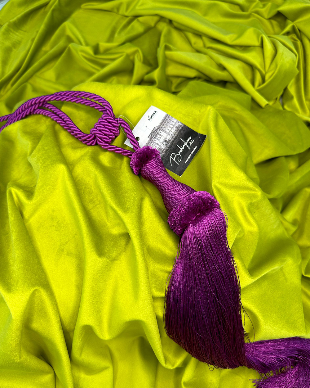 La solicitarea clientului draperia poate fi îmbogățită cu pasmanterie, oferind decorului un plus de frumusețe.
