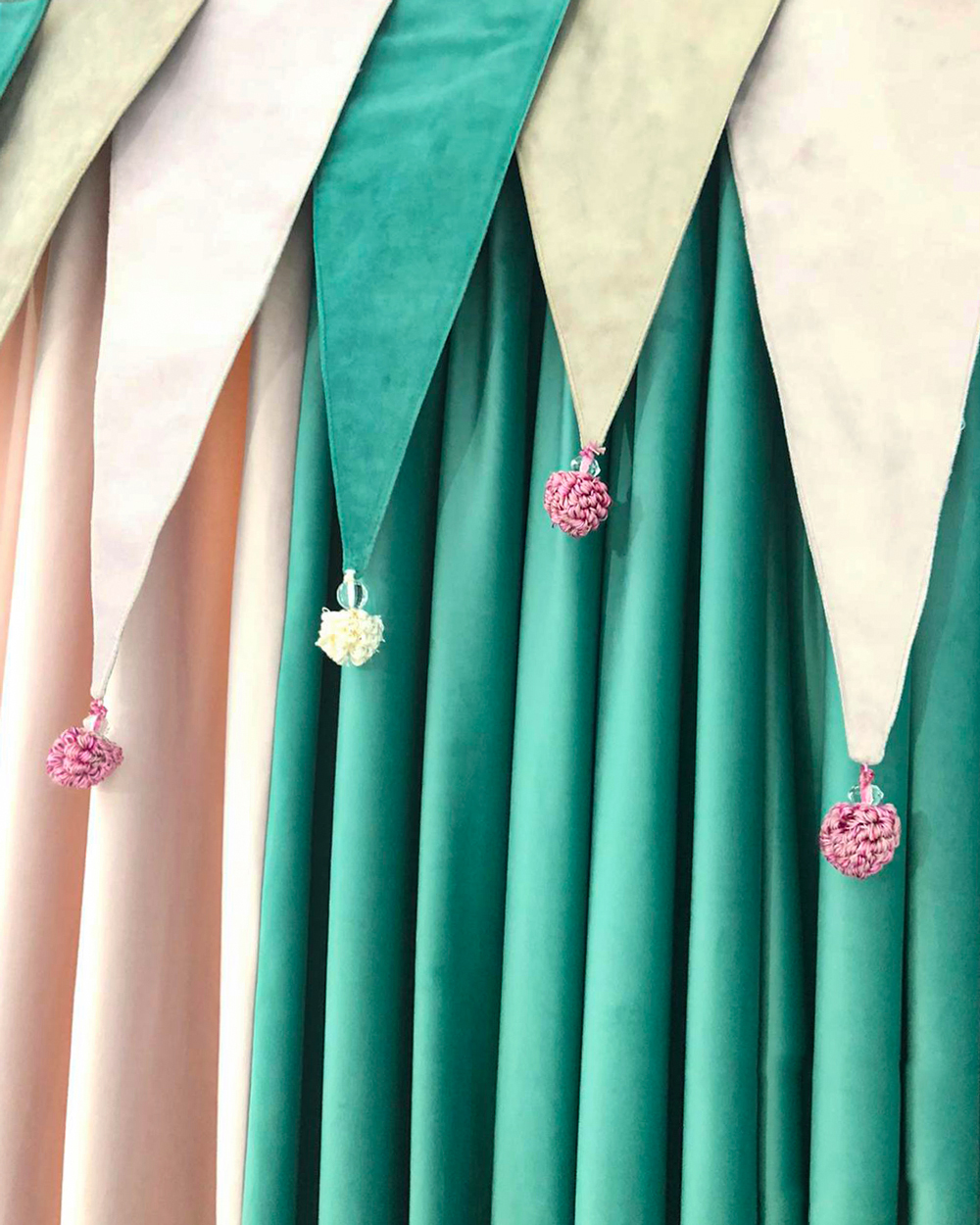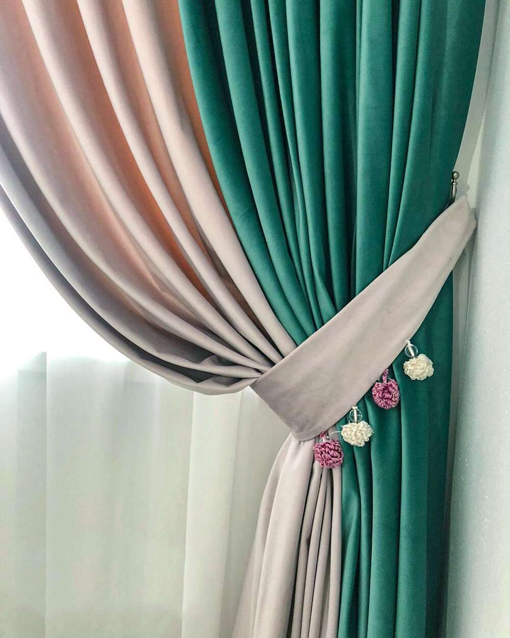 In functie de cerintele si preferintele clientului draperia poate fi imbogatita cu pasmaterie oferind decorului un plus de frumusete.