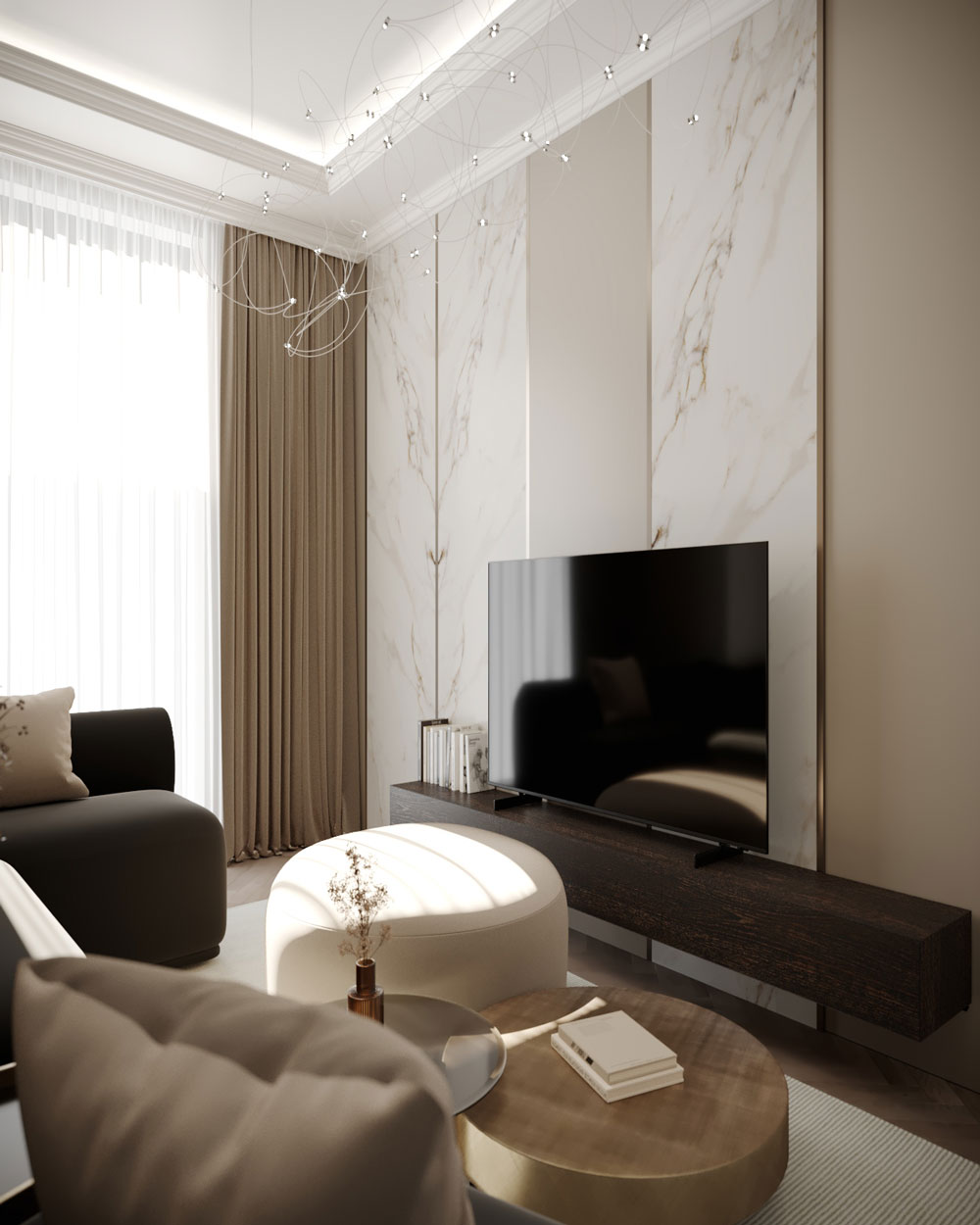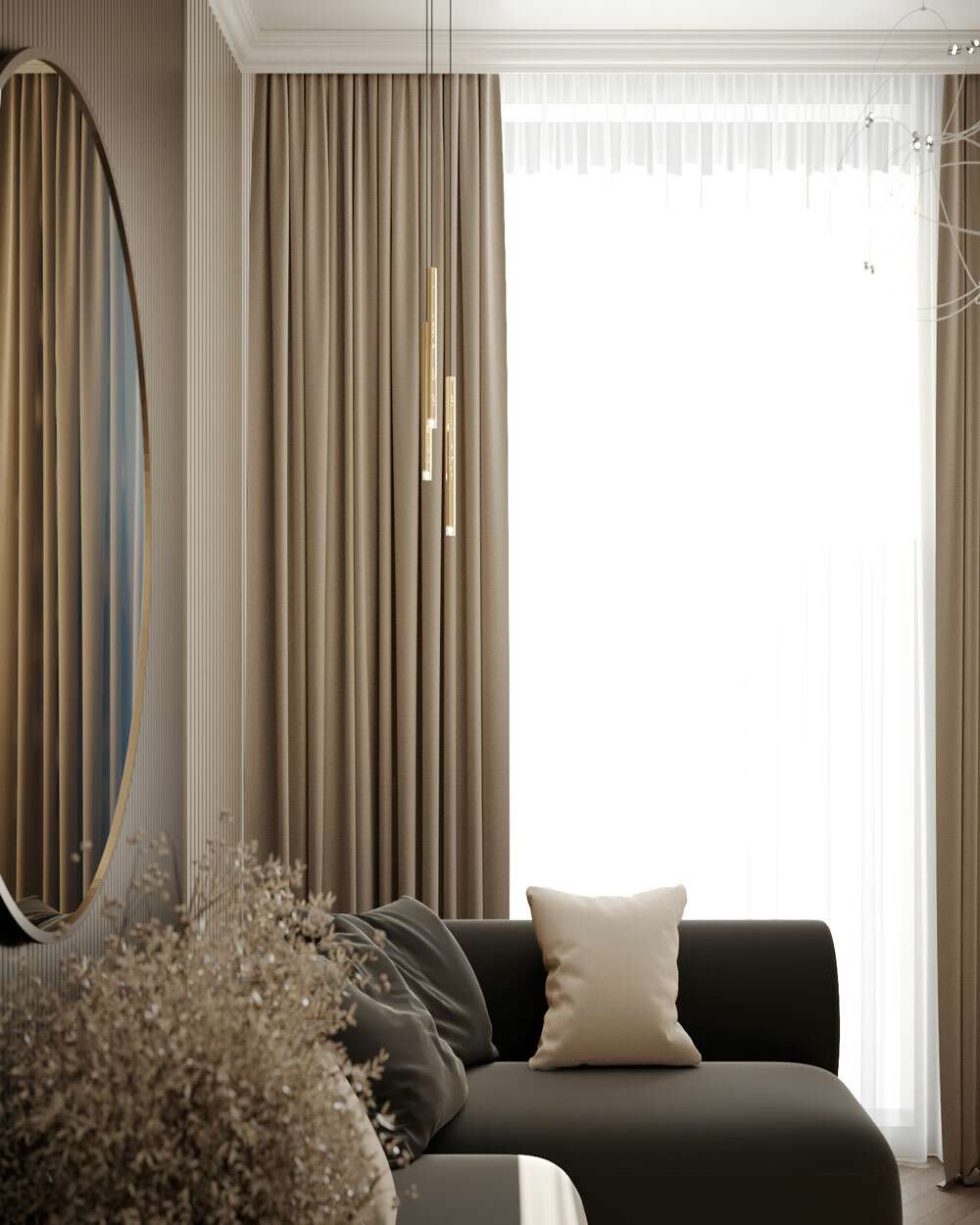 Tesatura uni confera fluiditate si armonie camerelor, redand imaginea unui spatiu aerisit si cu bun gust.