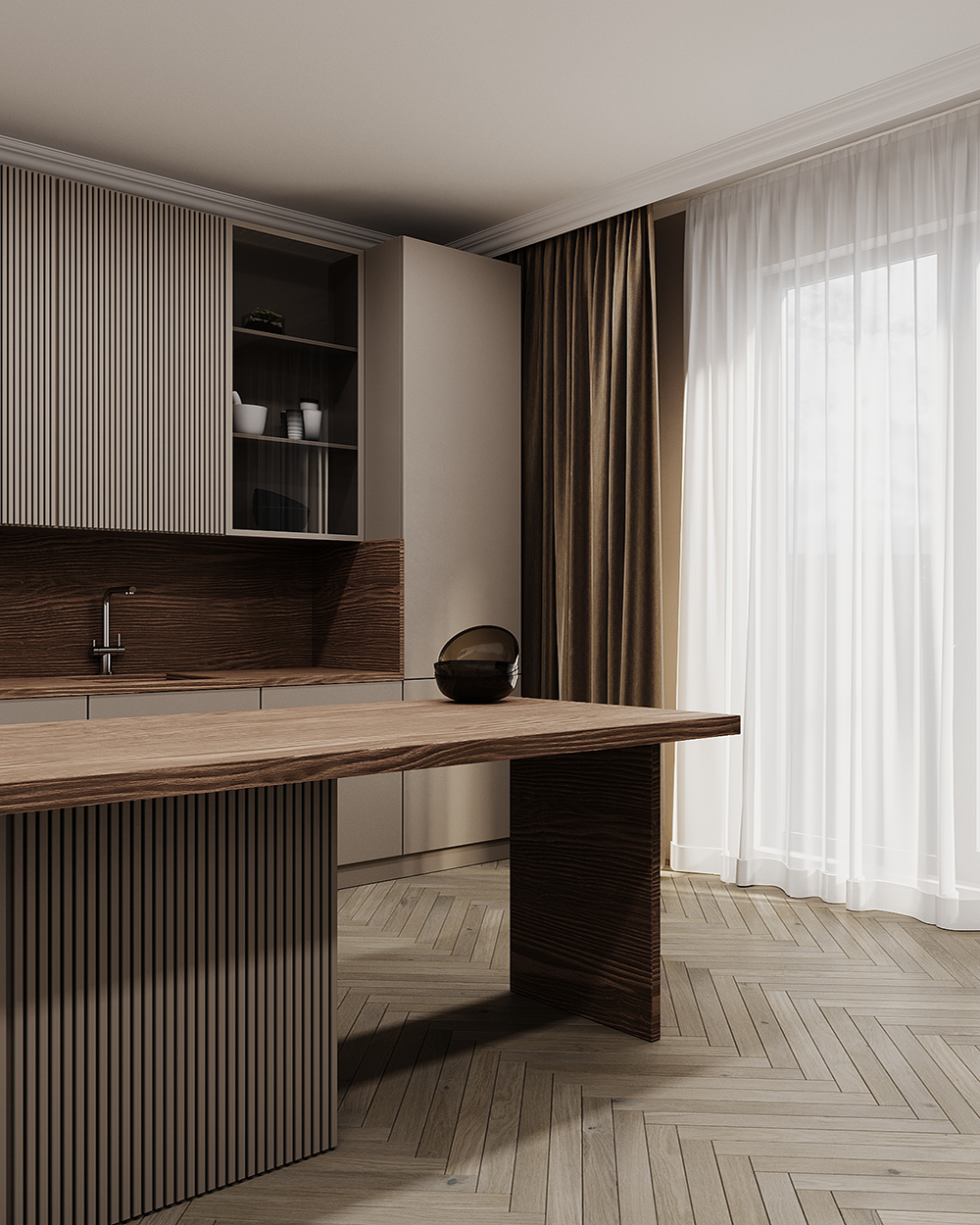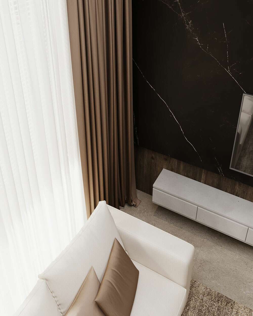Tesatura uni confera fluiditate si armonie camerelor, redand imaginea unui spatiu aerisit si cu bun gust.