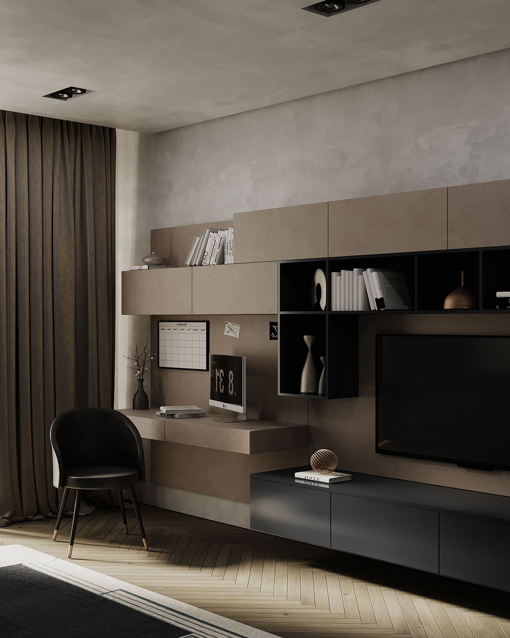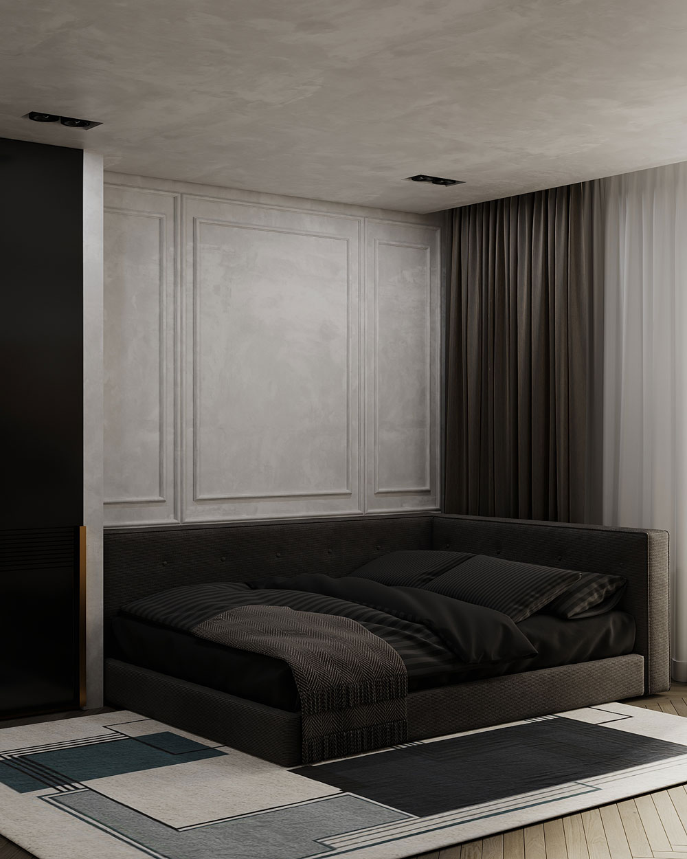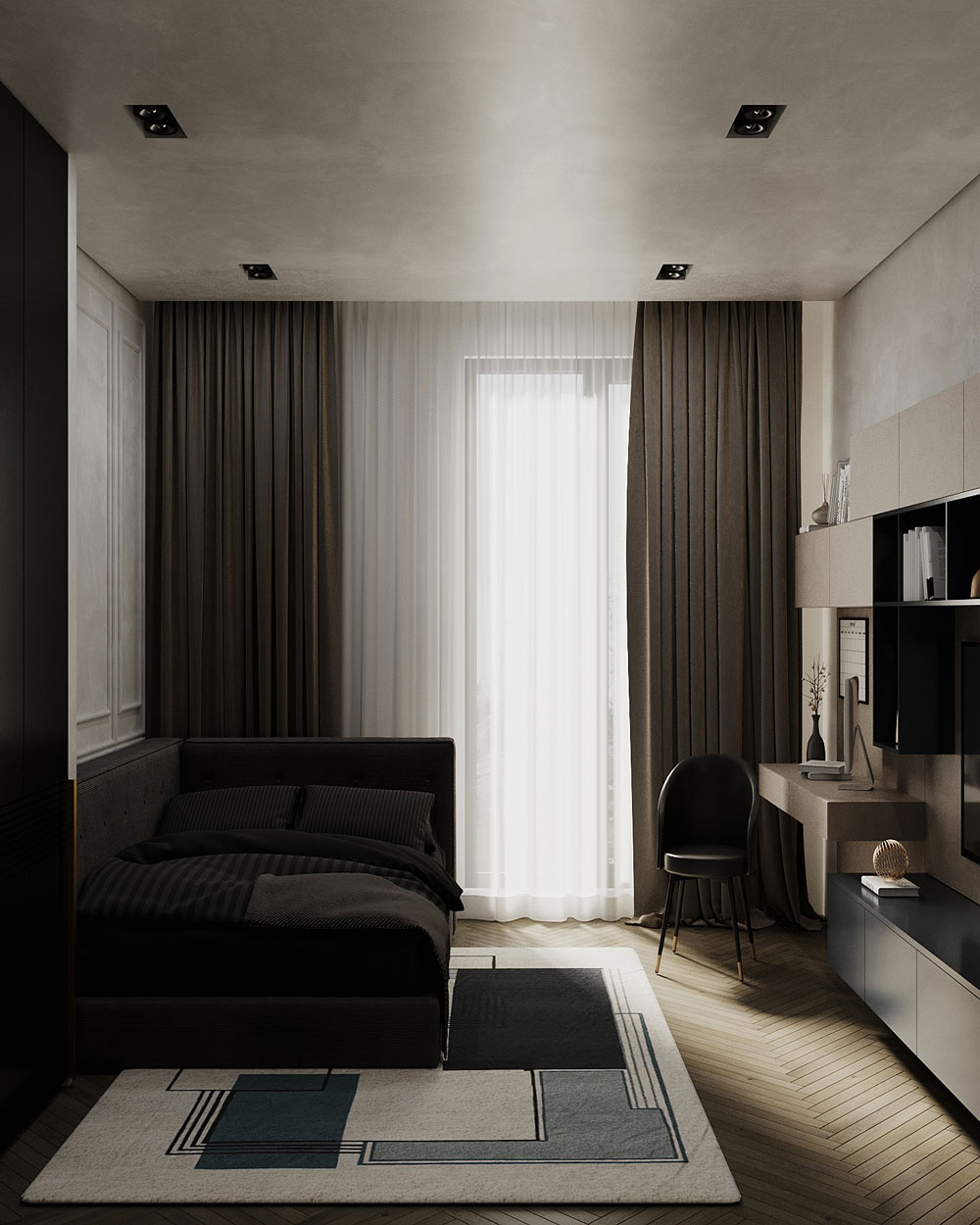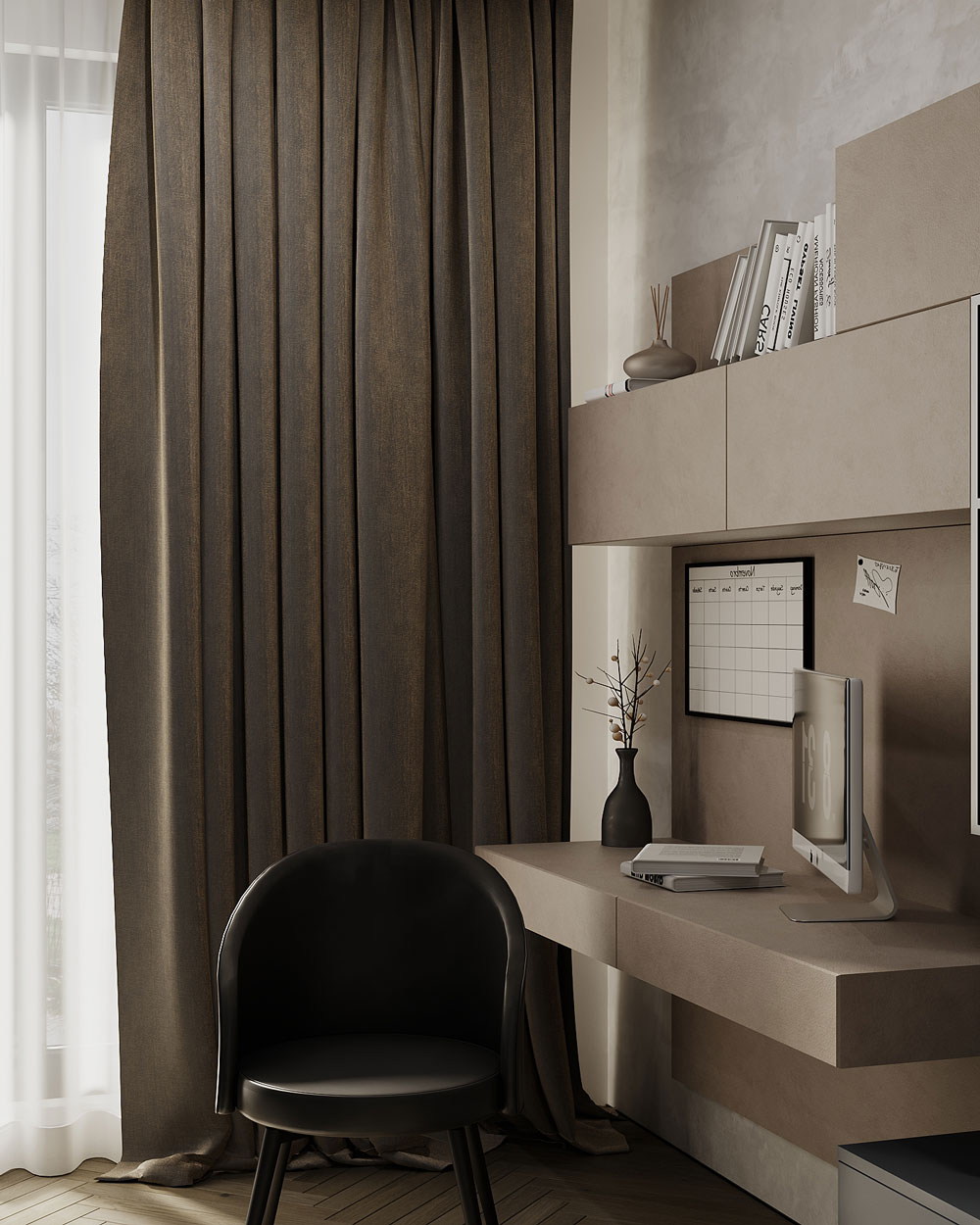 Tesatura uni confera fluiditate si armonie camerelor, redand imaginea unui spatiu aerisit si cu bun gust.