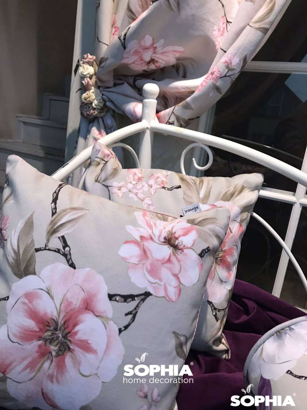 Tesatura draperie Chicago Sofa Carlota, bej cu imprimeu floral