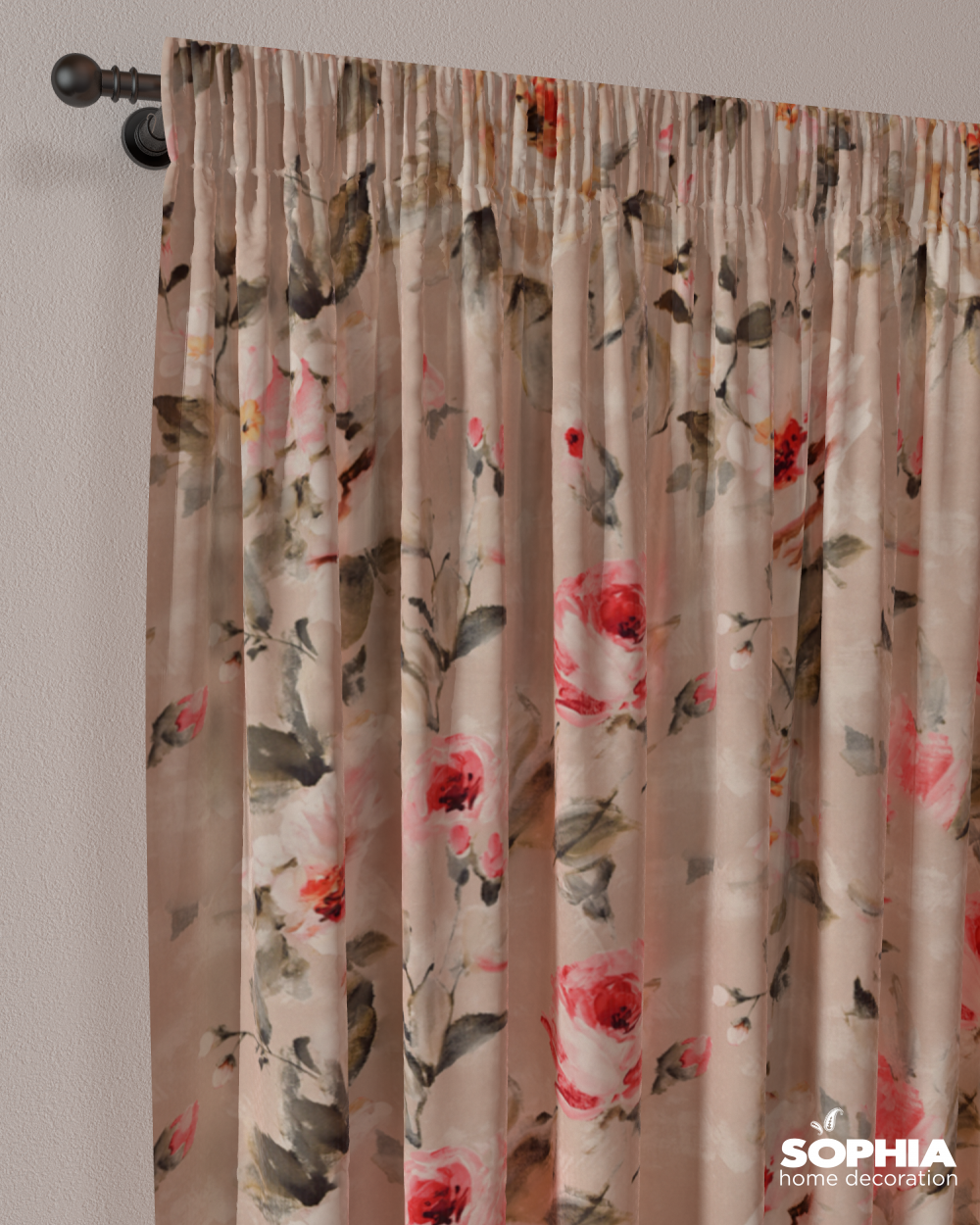 Tesatura draperie de catifea cu un model floral in stil shabby chic, confectionata din poliester 100%. Latimea acestui articol este 140 cm. Aceasta tesatura este perfecta pentru a infrumuseta orice incapere oferind un cadru elegant si modern. Tesatura poate fi folosita atat pentru draperii cat si pentru sisteme romane si tapiterii. Pretul este pentru metru liniar. In cazul in care produsul nu figureaza pe stoc, poate fi adus in maxim 60 de zile.