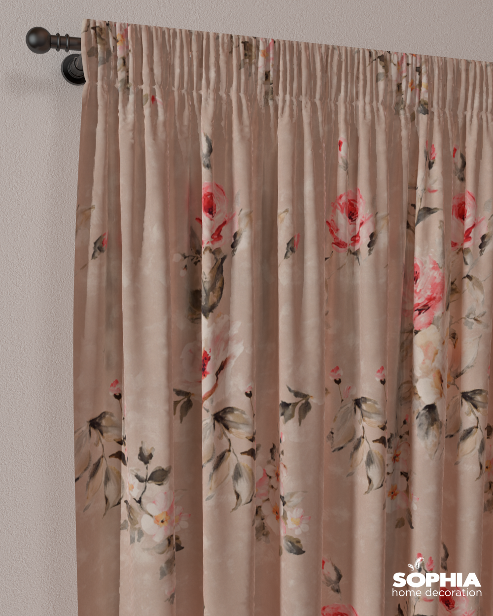 Tesatura draperie de catifea cu un model floral in stil shabby chic, confectionata din poliester 100%. Latimea acestui articol este 140 cm. Aceasta tesatura este perfecta pentru a infrumuseta orice incapere oferind un cadru elegant si modern. Tesatura poate fi folosita atat pentru draperii cat si pentru sisteme romane si tapiterii. Pretul este pentru metru liniar. In cazul in care produsul nu figureaza pe stoc, poate fi adus in maxim 60 de zile.