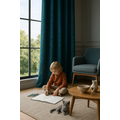 Nuanța turcoaz închis, cu reflexii subtile, adaugă profunzime și o notă sofisticată decorului, fiind ideală pentru interioare moderne, contemporane sau minimaliste. Textura moale la atingere și căderea uniformă transformă draperia într-un accent vizual plăcut și calmant, perfect pentru dormitoare, livinguri sau spații de relaxare.