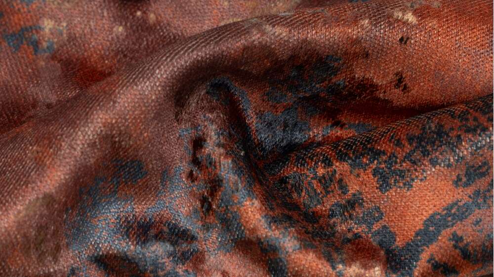 Această draperie jacquard în nuanțe de cupru atrage privirea prin efectul său vizual dramatic și prin jocul de texturi cu aspect ușor metalizat. Țesătura densă și bogată are un finisaj mat-satinat, ce oferă profunzime și eleganță oricărui spațiu.