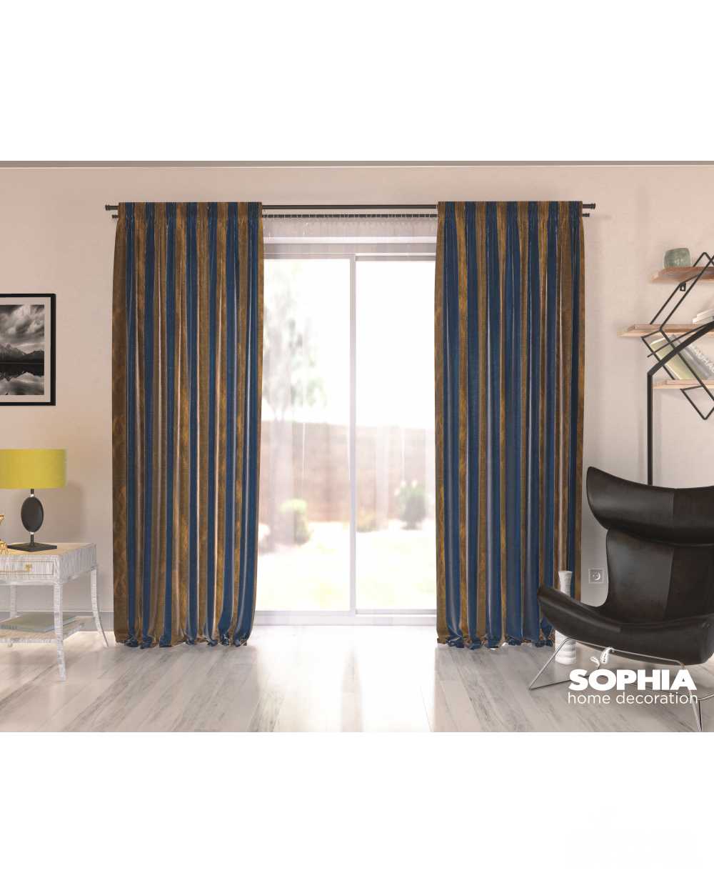O atmosfera calda, un ceai impreuna cu prietenii, o seara agreabila cu familia? Le poti trai din plin intr-un interior rafinat, decorat cu o draperie Gabriella, in nuante de albastru/auriu.