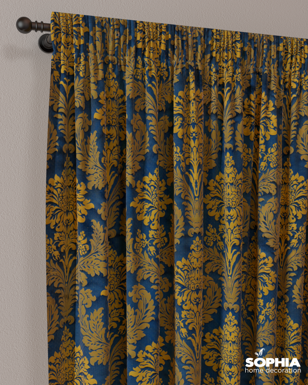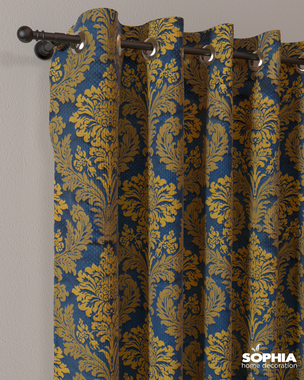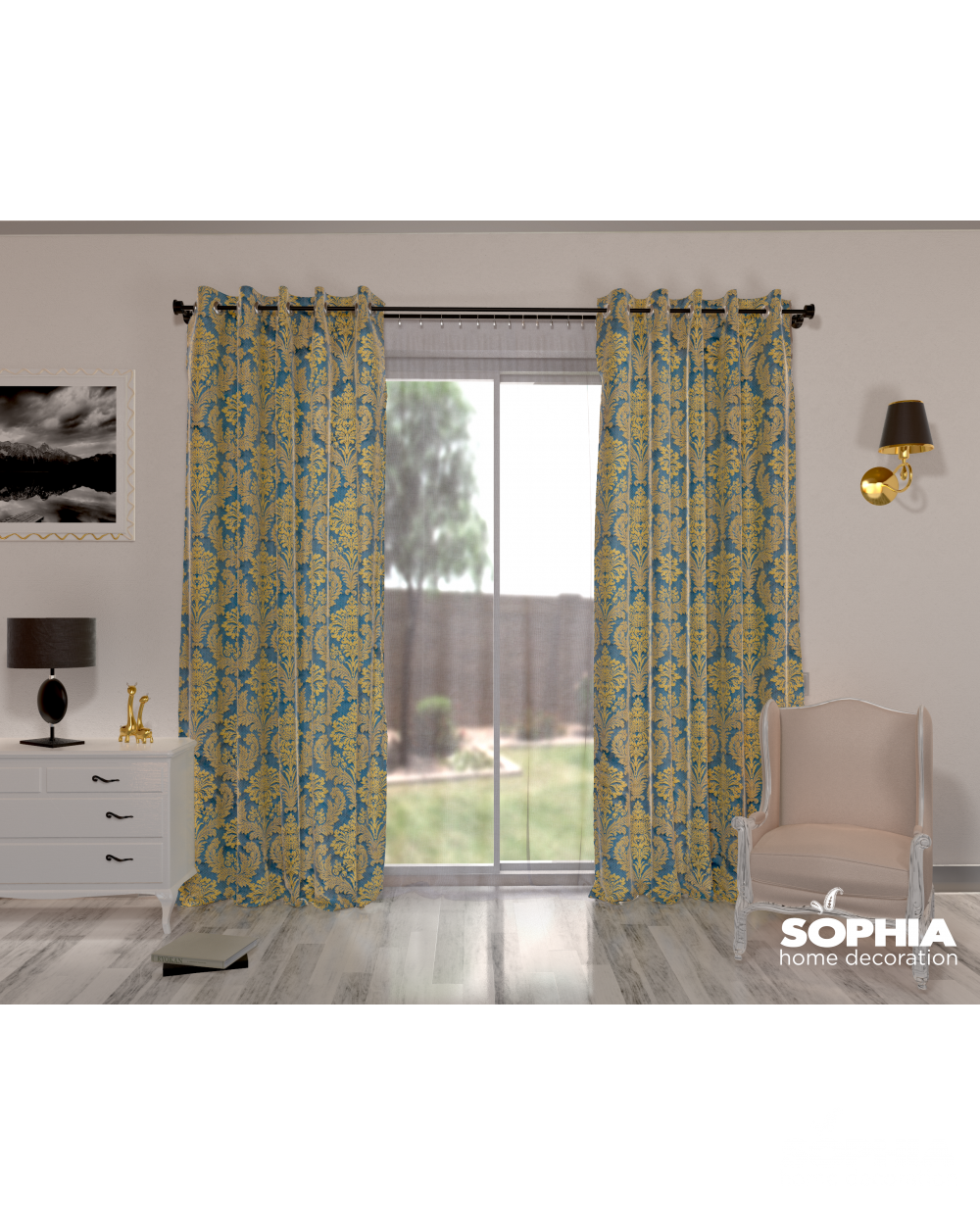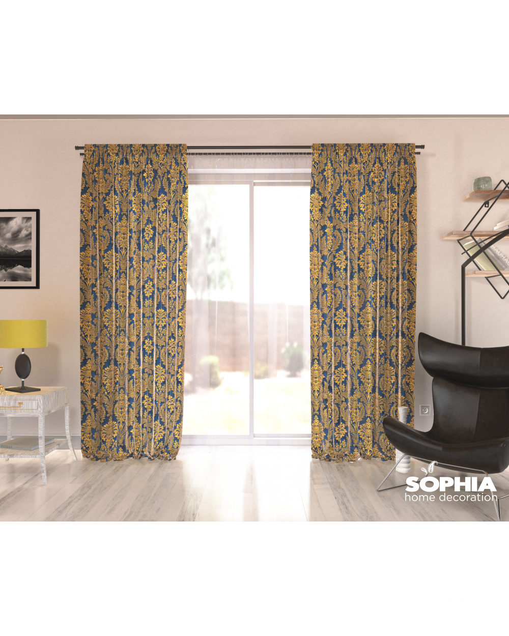 Țesătură draperie Gabriella, albastru, auriu