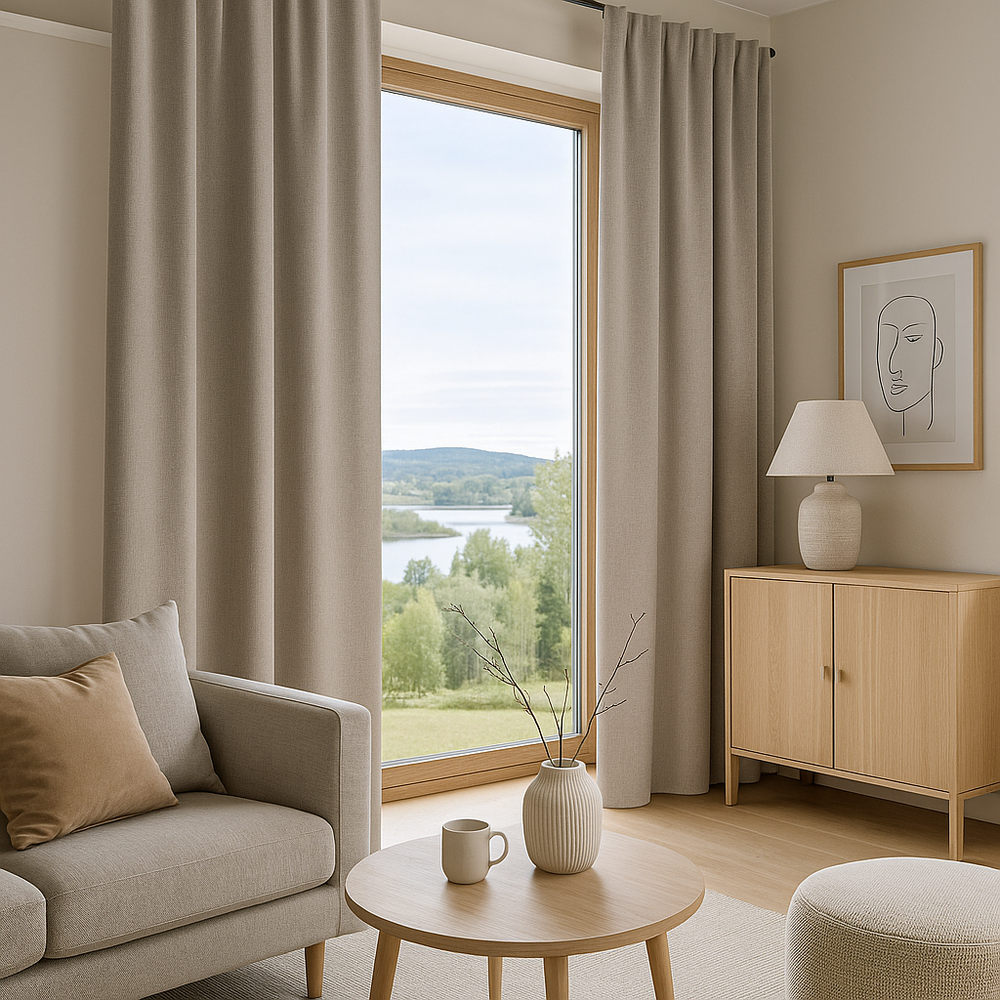 Țesătura sa densă oferă o protecție excelentă împotriva luminii, menținând confortul termic și intimitatea spațiului. Suprafața fină, cu o textură ușor mată, conferă o cădere naturală și un aspect sofisticat, fără a încărca vizual încăperea.