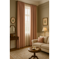 • Această draperie se integrează cu ușurință în amenajări moderne, contemporane sau în stil romantic, fiind potrivită pentru livinguri, dormitoare sau camere de hotel. Pentru un decor echilibrat, se poate asocia cu perdele din voal alb fildeș sau bej deschis.