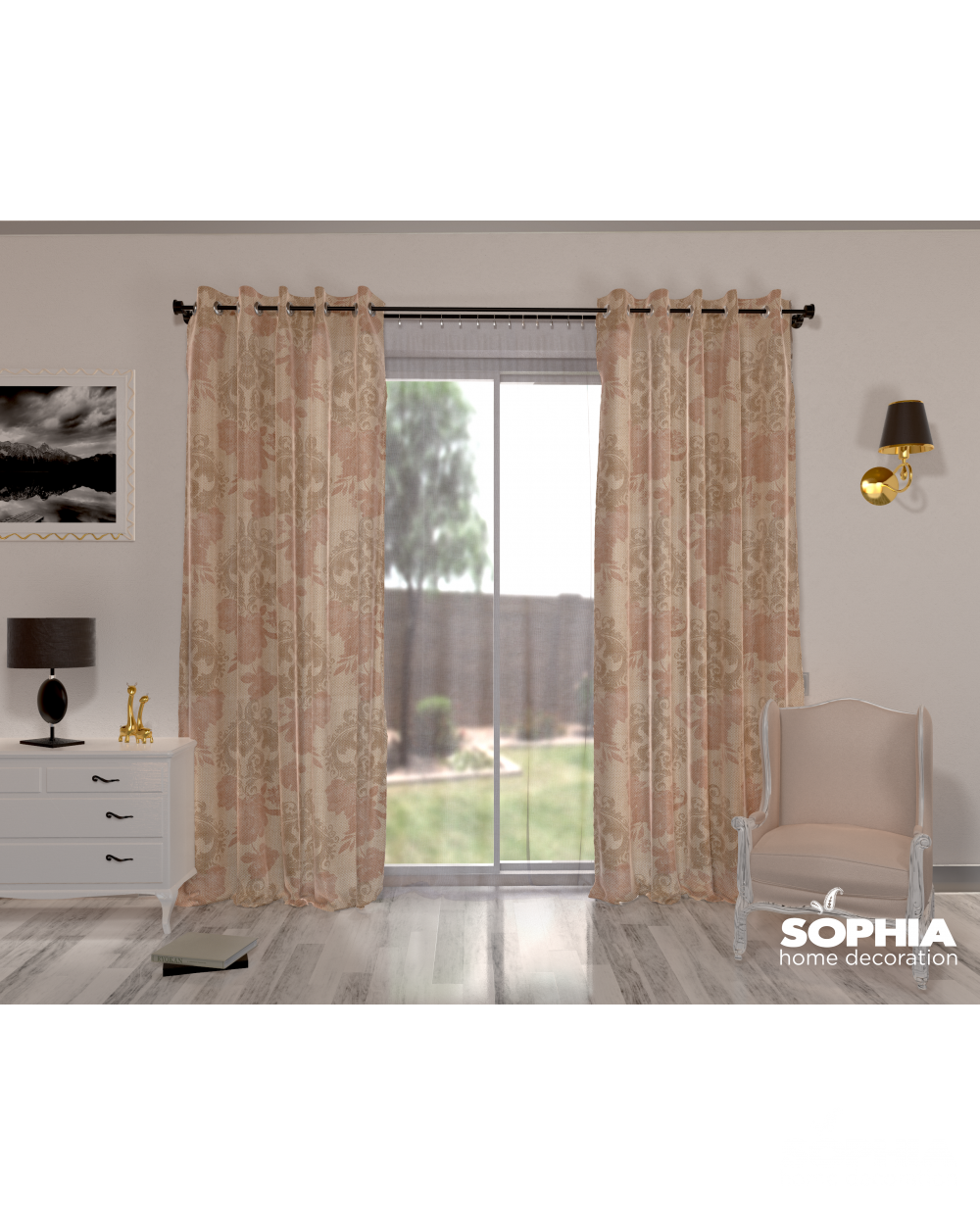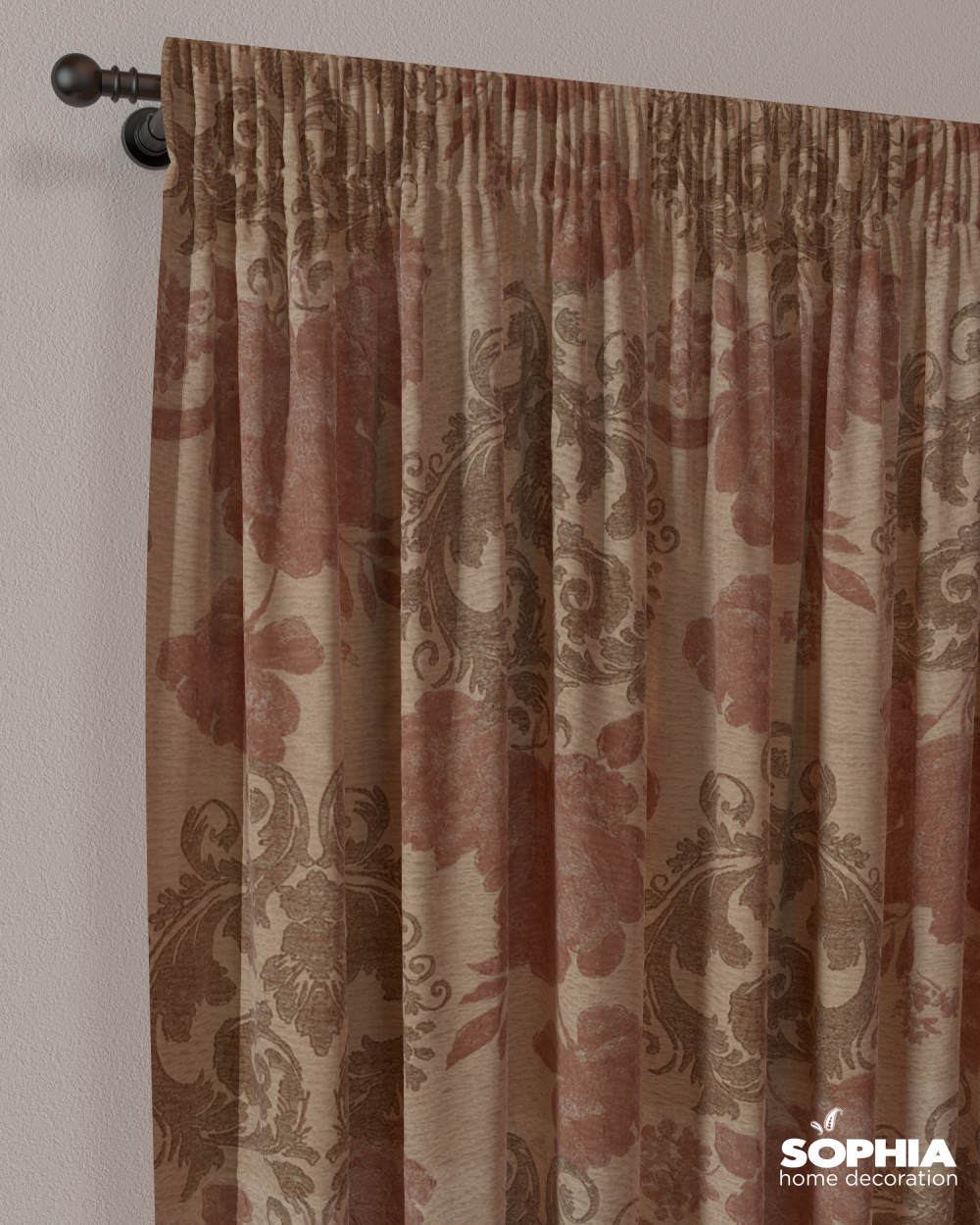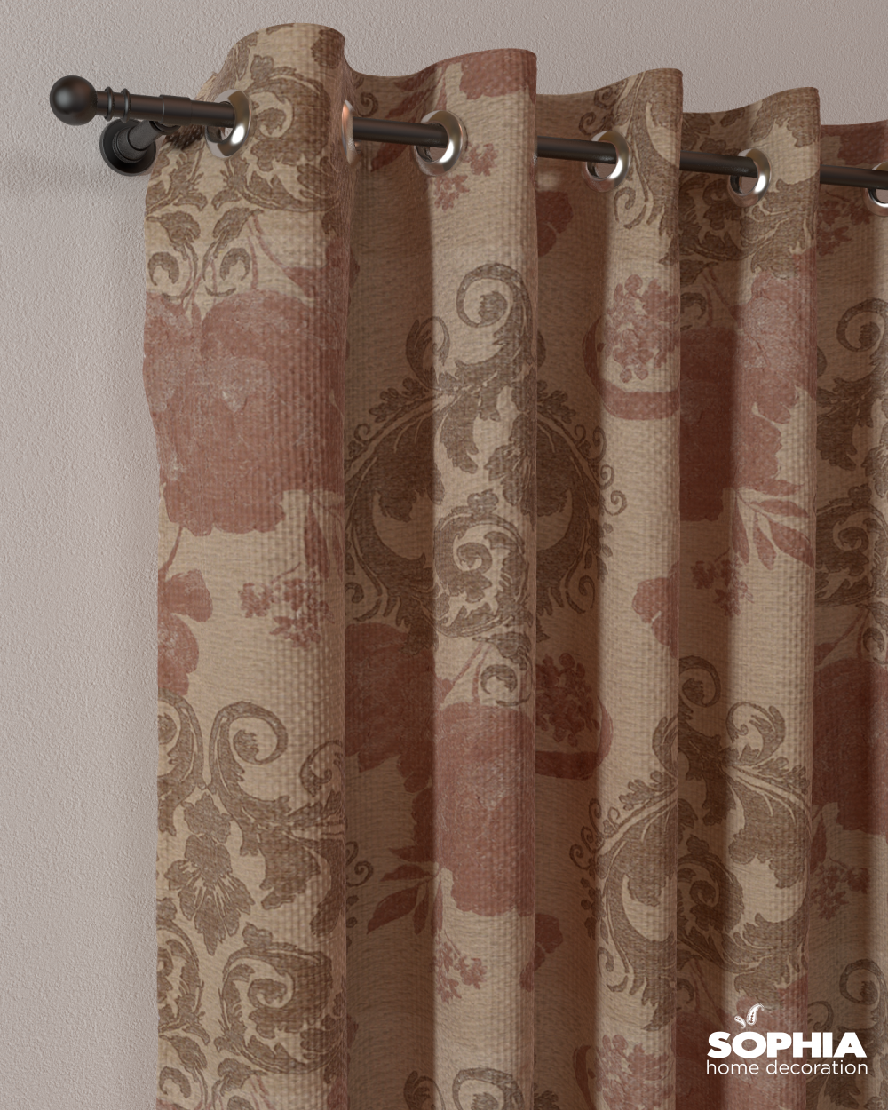 Țesătură draperie Lovely, bej, grena