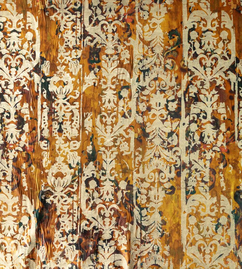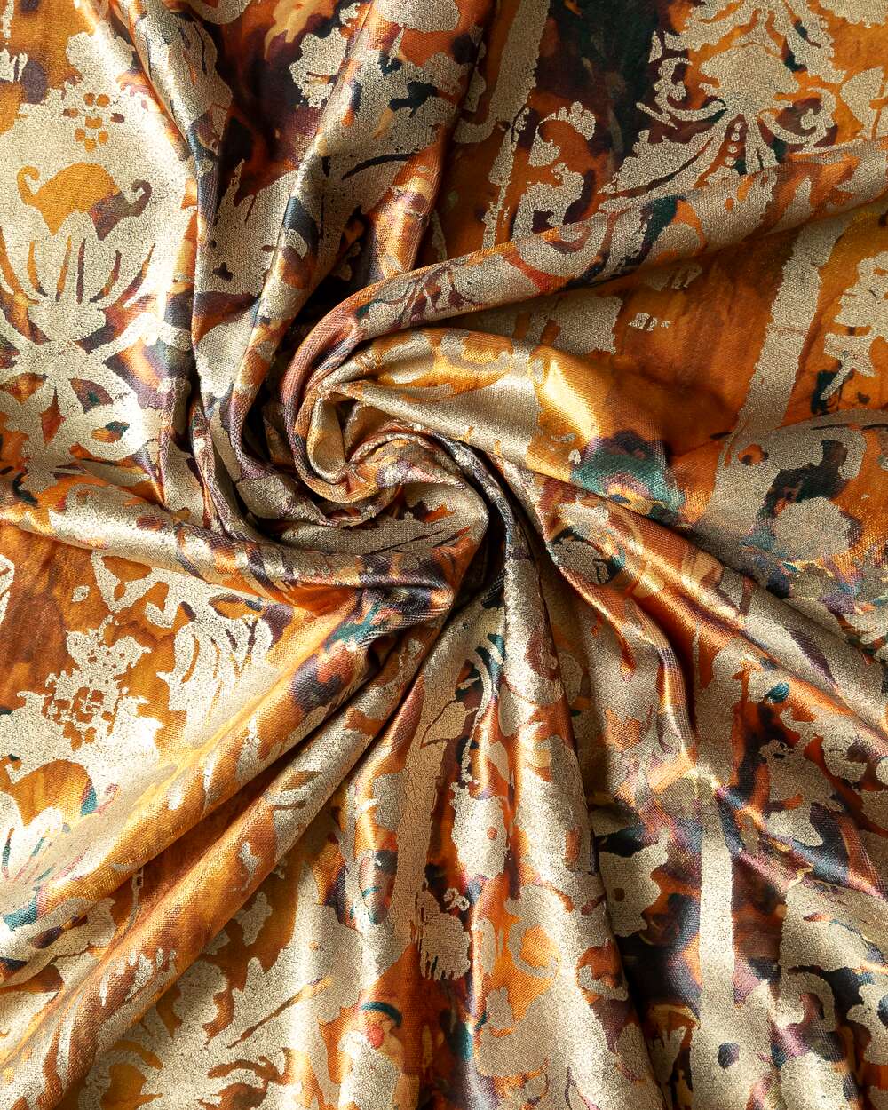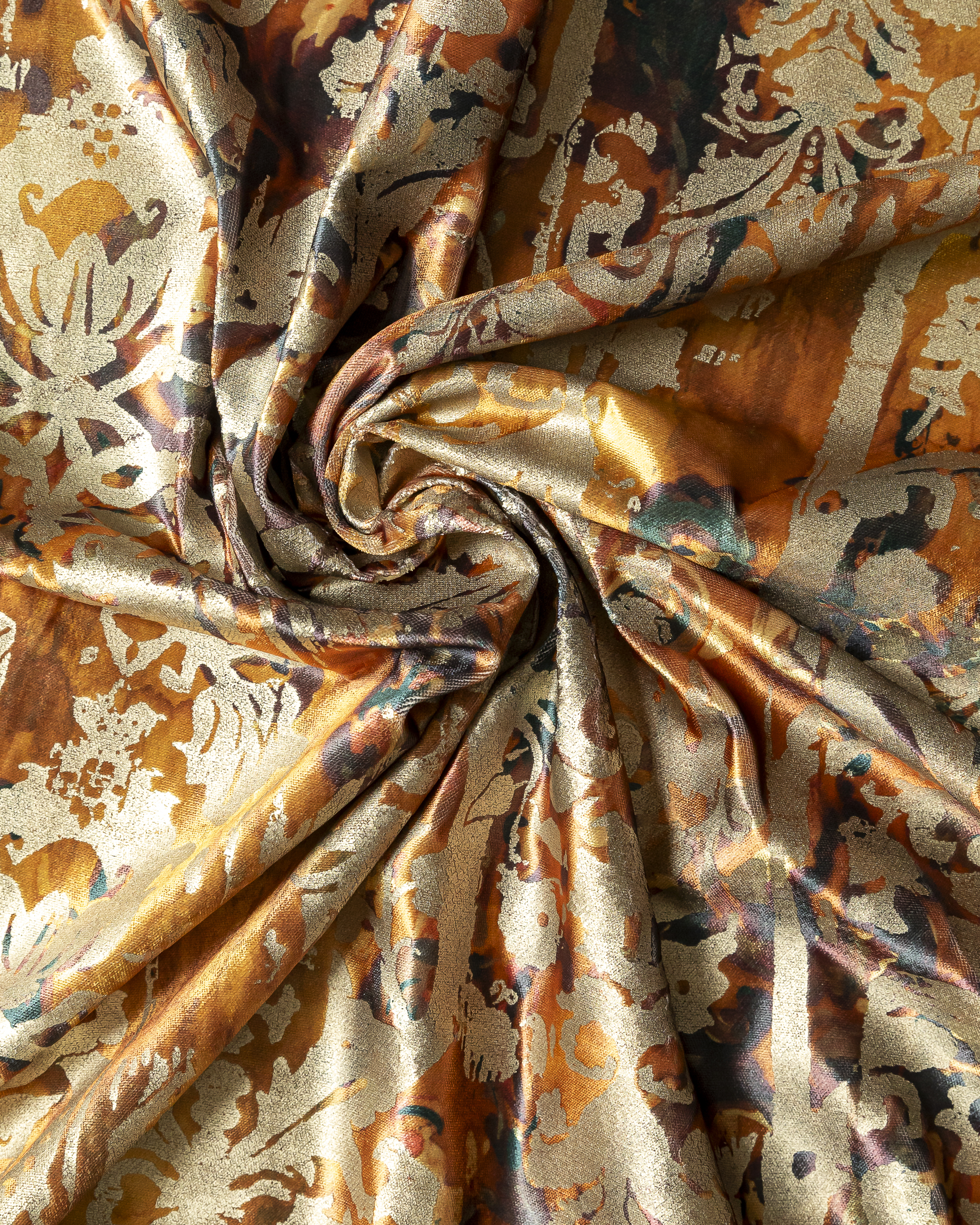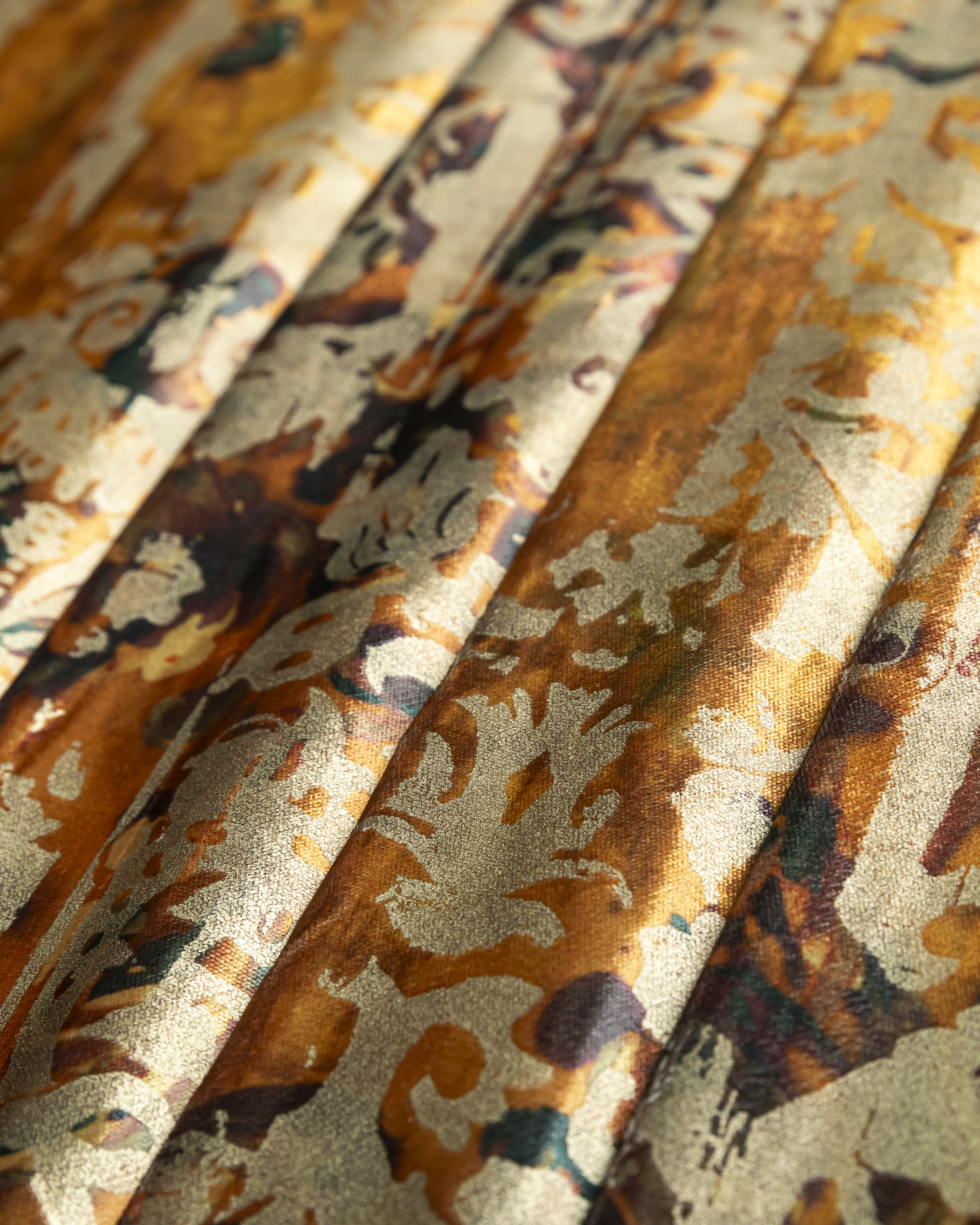 Tesatura draperie Rio de Janeiro, buchet frunze toamna cu blazon kaki auriu