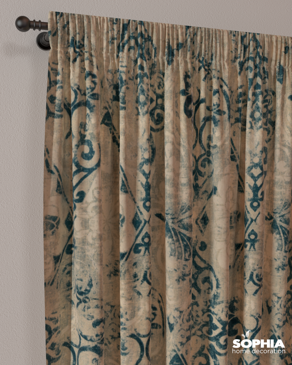 Tesatura draperie Velvet Print Romantica, verde, gri