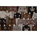 Design: Model cu animăluțe stilizate cu pisici în nuanțe de maro, bej, gri și accente închise