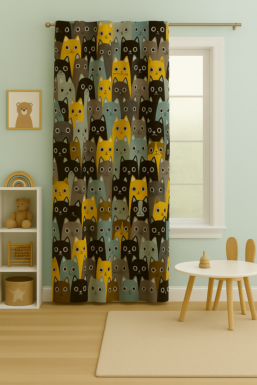 Țesătura cu imprimeu de pisici este alegerea perfectă pentru decorarea camerei copilului, oferind un ambient modern și plin de veselie. Modelul plin de personaje stilizate, în nuanțe de galben muștar, albastru petrol, gri și accente închise, aduce un plus de căldură și dinamism oricărui spațiu. Această țesătură este potrivită atât pentru draperii, cât și pentru lenjerii, perne decorative sau traverse, creând un decor unitar, armonios și prietenos pentru cei mici.