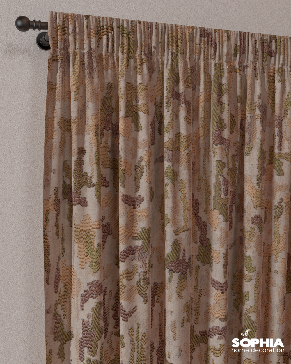 Draperia Vittorio, verde, maro, crem, bej te indeamna sa intri in lumea modernismului. Materialul pretios al acestei colectii va aduce un plus de rafinament si eleganta caminului tau, oferind decorului o nota aparte.