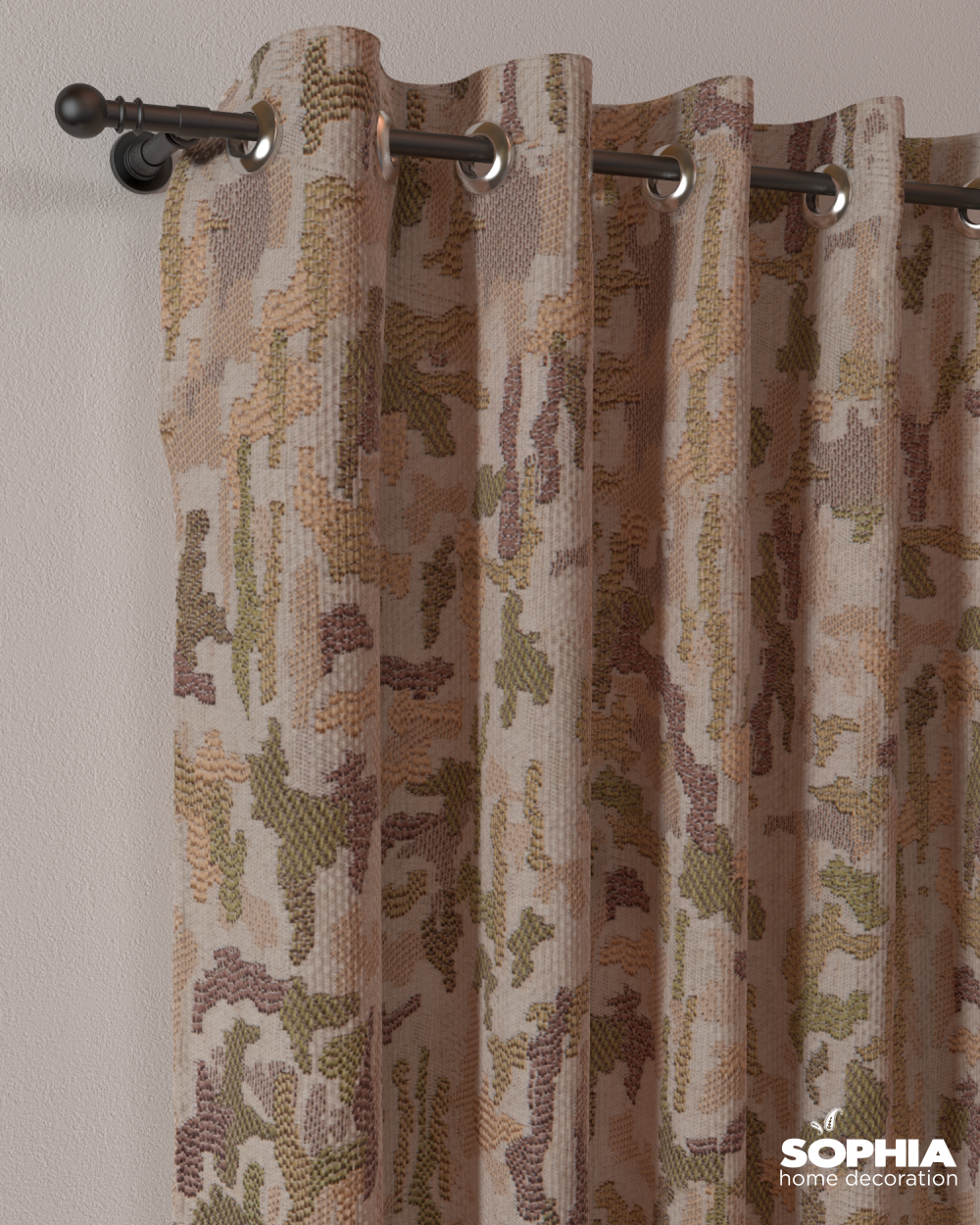 Draperia Vittorio, verde, maro, crem, bej te indeamna sa intri in lumea modernismului. Materialul pretios al acestei colectii va aduce un plus de rafinament si eleganta caminului tau, oferind decorului o nota aparte.