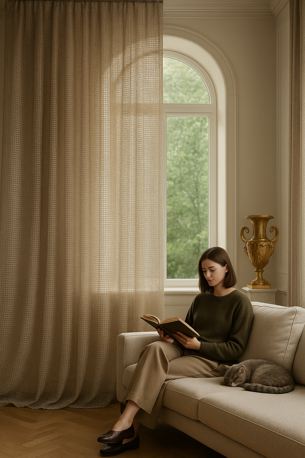 Materialul fin permite trecerea luminii naturale, oferind totodată un nivel plăcut de intimitate. Datorită texturii sale fluide și maleabile, această perdea este ideală pentru amenajări clasice, moderne sau scandinave, completând perfect decoruri în tonuri neutre.