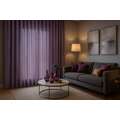 Această perdea gri închis se remarcă prin textura sa fină, cu o țesătură ușor striată ce creează un joc subtil de lumină și umbră. Materialul are un aspect modern, cu o tentă metalizată discretă, oferind un echilibru între naturalețe și eleganță.