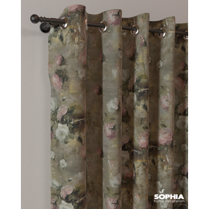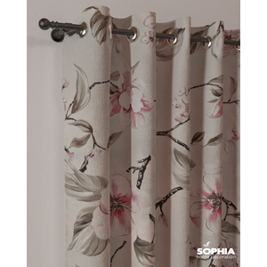 Tesatura draperie Floral Paintings, fumuriu, roz, alb