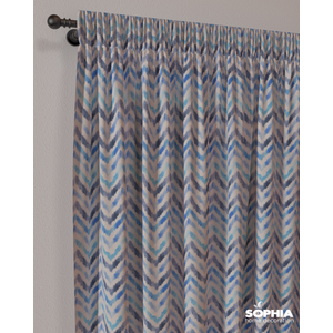 Tesatura draperie Java Il Scripto, albastru, crem