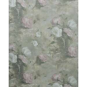 Țesătura perdea Voile Fabric Floral Paintings, gri, verde, roz